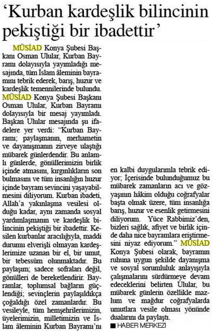 Başkan Osman Ulular'ın Kurban Bayramı Tebrik Mesajı