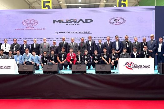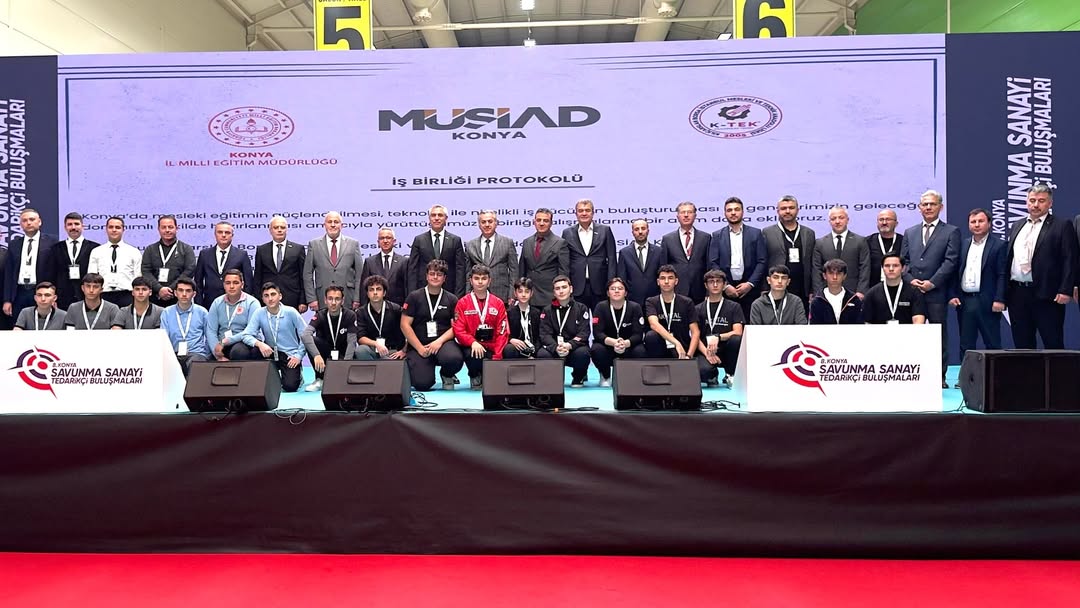 Konuşmaların ardından “Okul–Sanayi İş Birliği Protokolü” imzalandı. Protokol kapsamında, MÜSİAD Konya Şubesi’nin hamisi olduğu Kılıçarslan Borsa İstanbul Mesleki ve Teknik Anadolu Lisesi projede uygulama okulu olarak yer alacak. Bu iş birliği, öğrencilerin savunma sanayinin ihtiyaç duyduğu niteliklere uygun şekilde yetiştirilmesine, sektör ile eğitim kurumları arasında bilgi ve tecrübe paylaşımının güçlendirilmesine önemli katkı sağlayacak.