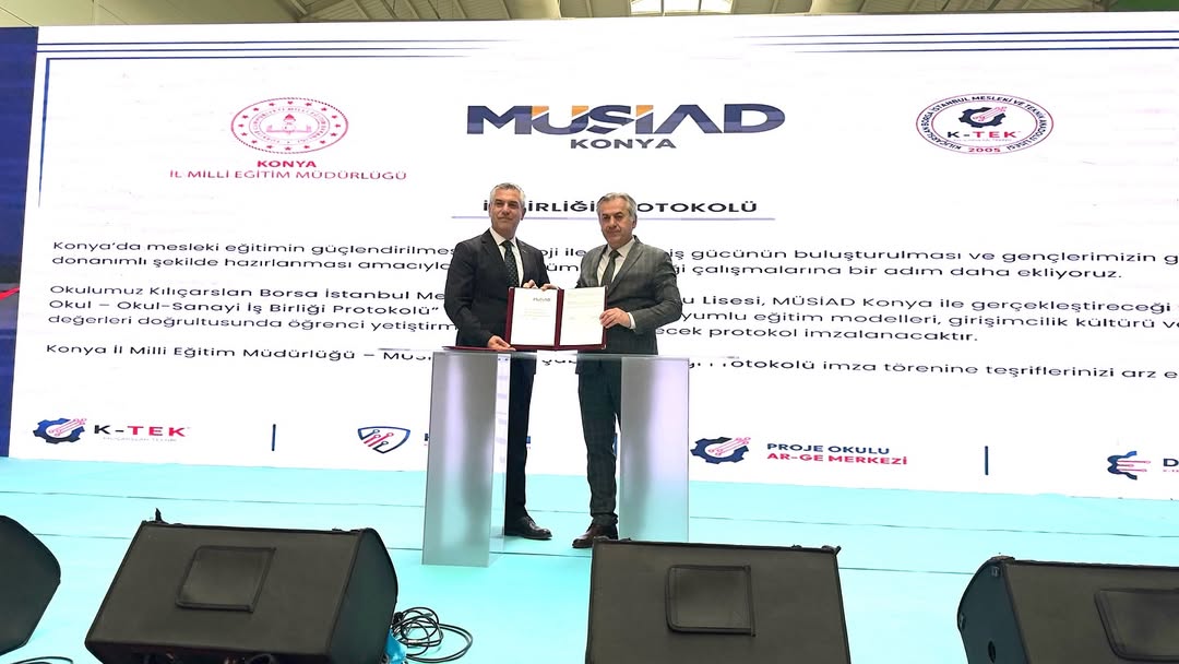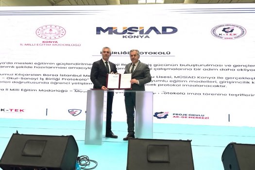 Konya İl Millî Eğitim Müdürlüğü ile Müstakil Sanayici ve İşadamları Derneği (MÜSİAD) Konya Şubesi arasında, eğitim ile sanayi arasındaki ilişkileri güçlendirmek ve mesleki eğitimi desteklemek amacıyla “Okul–Sanayi İş Birliği Protokolü” imzalandı.